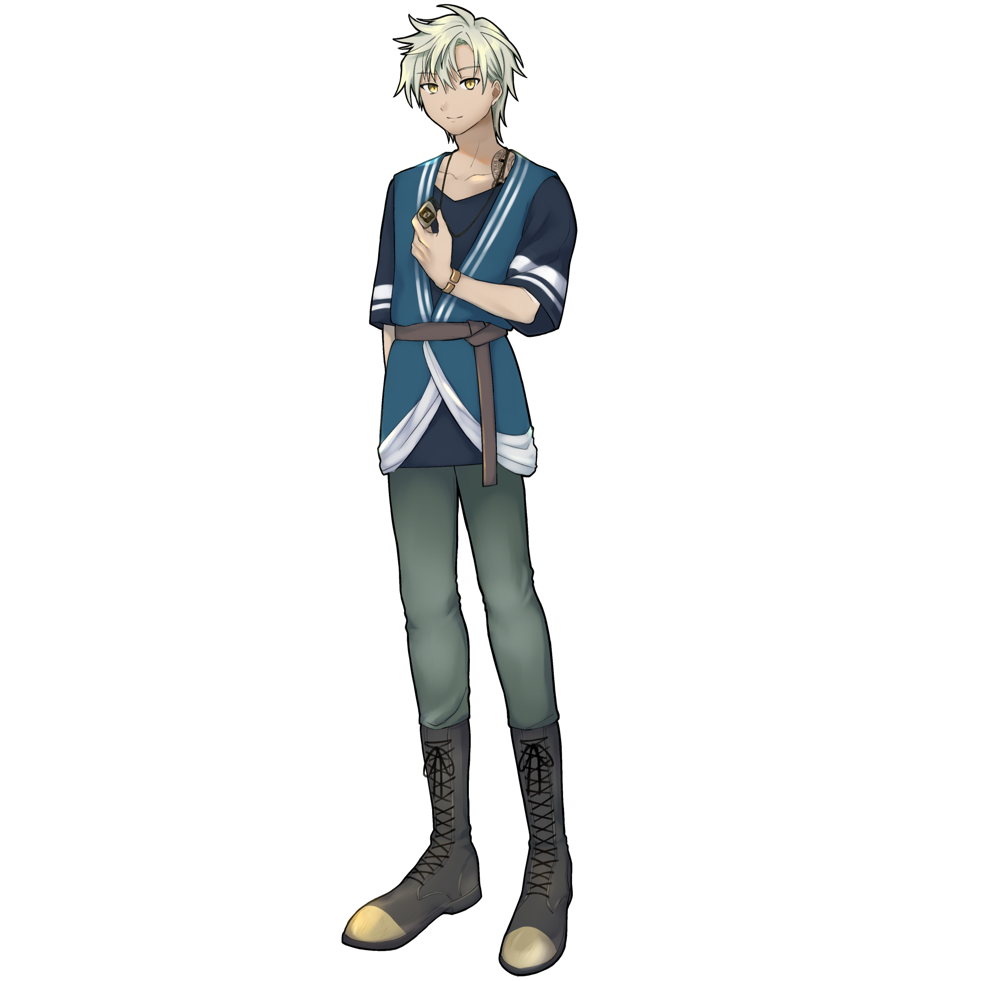 テラスティア大陸、ユーレリア地方、ユレヒト魔法遺跡研究会が遺跡発掘中に発見したハイマンです。遺跡から出てきた時点で10歳ほどでしたが、休眠装置に入る前の記憶は持っていませんでした。それ故に、自分の記憶、そしてハイマンとして持つ前世の記憶、その二つの手掛かりを掴むため、主な移動手段を船として各地を巡り、そんな生活の中で、荷物などを運ぶ仕事をするようになりました。最終的に、なんとなく懐かしさを感じたアルフレイム大陸で冒険者となっています。ある夜、韋駄天ラトクレスより「君はとても頑張っているね」という褒め言葉をもらい、信仰にも目覚めています。なお、本来はハイマンらしい真っ白な髪と肌をしていましたが、長い船旅によって髪の毛はくすんで灰色がかり、肌は褐色に焼けています。