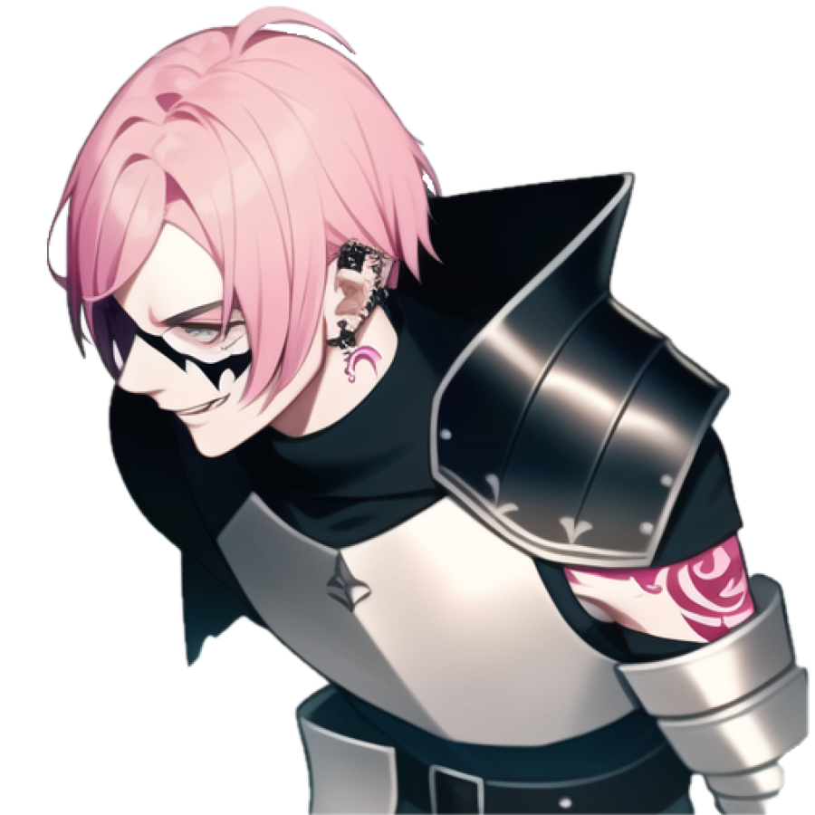 桃色の髪と入れ墨に見える痣が特徴的な宗教家