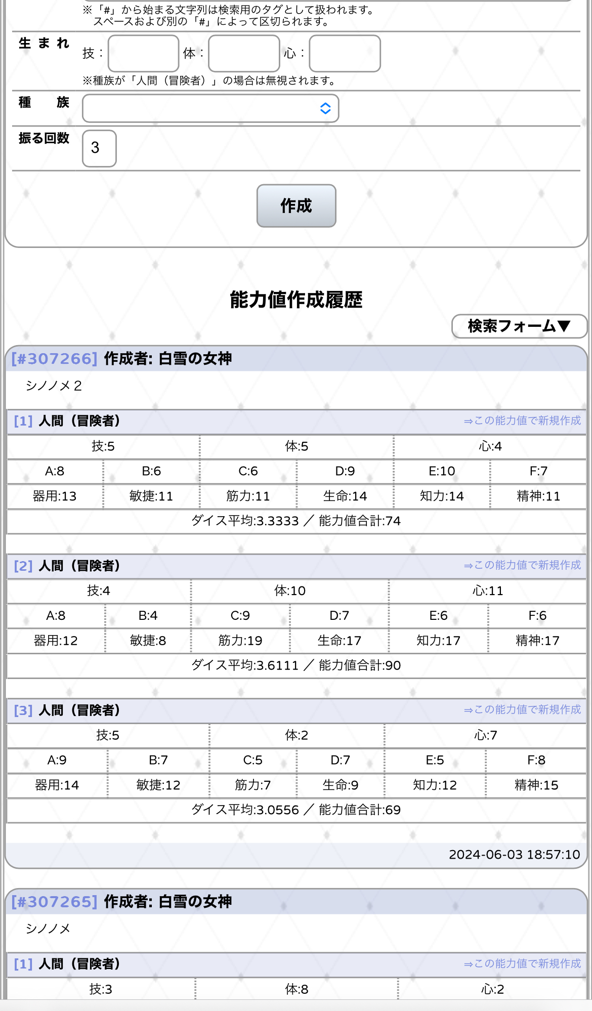 | キャラクター作成 | 3,000| 1,200 |