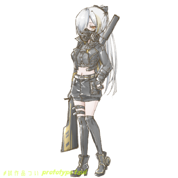 異質なガスマスクを筆頭に、近未来的廃材ファッションが目立つ白髪のポニテメカクレ冒険者。