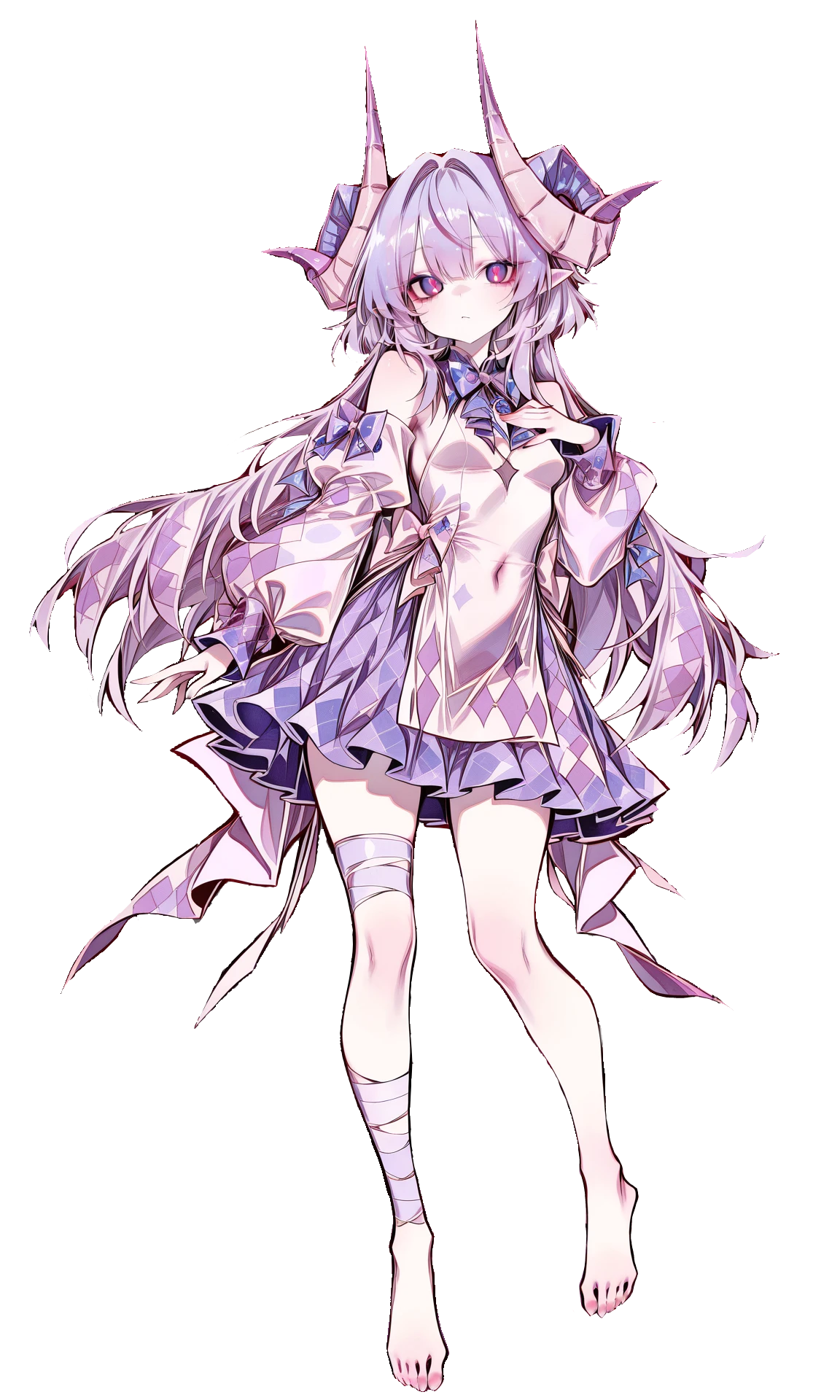 元奴隷の物静かで怖がりな少女。奴隷だったにも拘らず逃げ出して浮民となった。蛮族に飼われている人族から生まれたナイトメアであり、それゆえに親からの愛情を受けることなく育った。蛮族からは少し頑丈なおもちゃとして気に入られ、〈召異の刺青〉は物心ついたころに戯れで刻まれた。あまりに幼いうちであったため、角の形状が変異するなどの身体的な異常も現れている。また、人族のナイトメアでありながら尖った耳をしているのは、エルフの奴隷を羨ましがった飼い主によって、尖るように千切られたあと自然治癒の過程で召異魔法によって形を整えたからである。