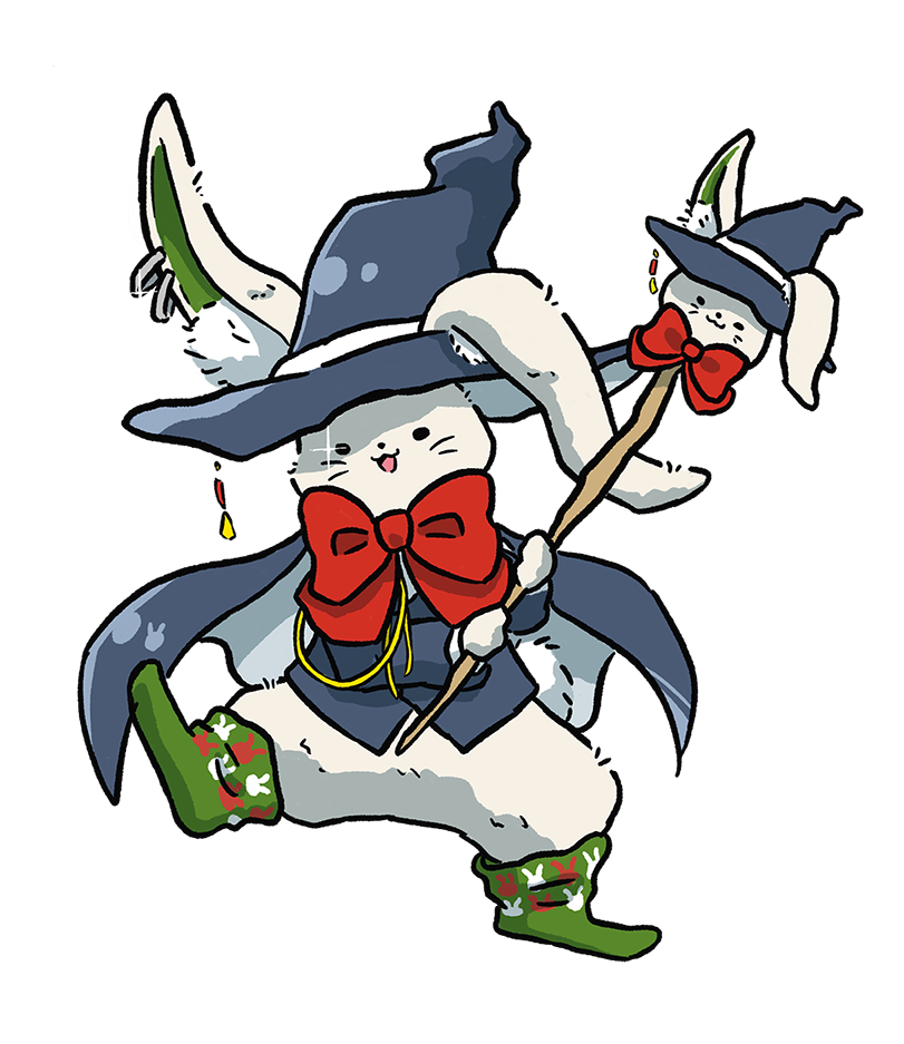 見聞を広げるために旅に出た、オシャレな旅ウサギ。なんでも興味津々。色んなとこを歩き回ったり、飛行船にも乗ったり…どこへだって行ってしまうんだ。でも溺れたことがあって、水場は苦手みたい。知らない建物の夢を何回も見るよ。旅をしていくうちに、いつか実際に見れるかも…なんて思ってるよ。