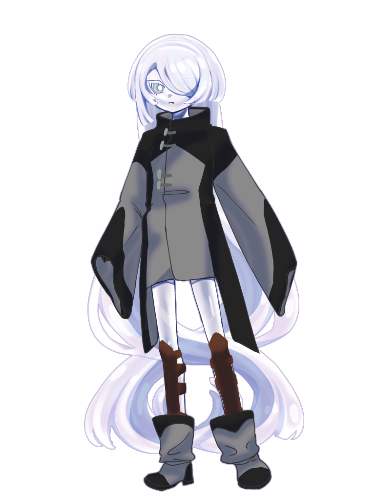 体と同色の長い髪を足元まで垂らしている。