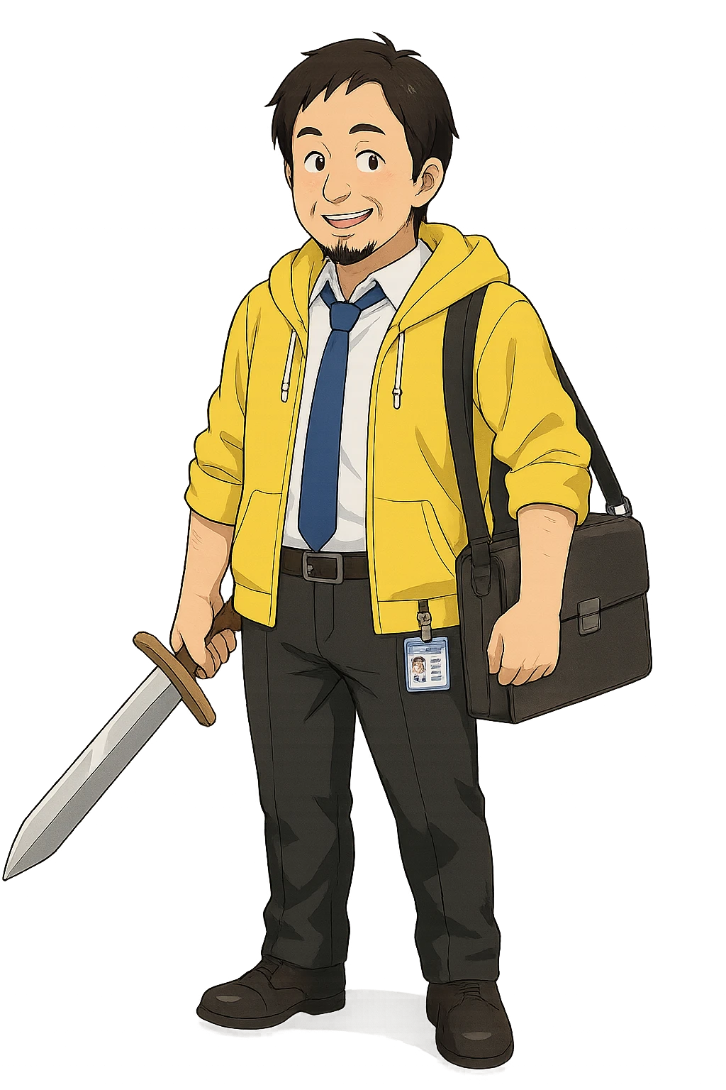 元の世界の社員証が腰にぶら下がっている