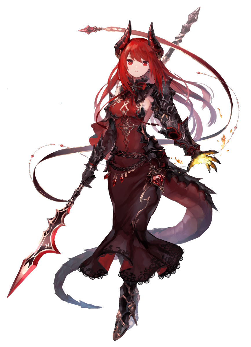 髪の色:赤 目の色:赤 肌の色:肌白い 角が生えている