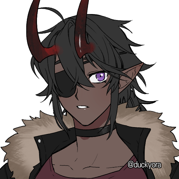 ミッドナイトブルーの肌にチャコールグレイの長い髪、瞳は濃いめのラベンダー。