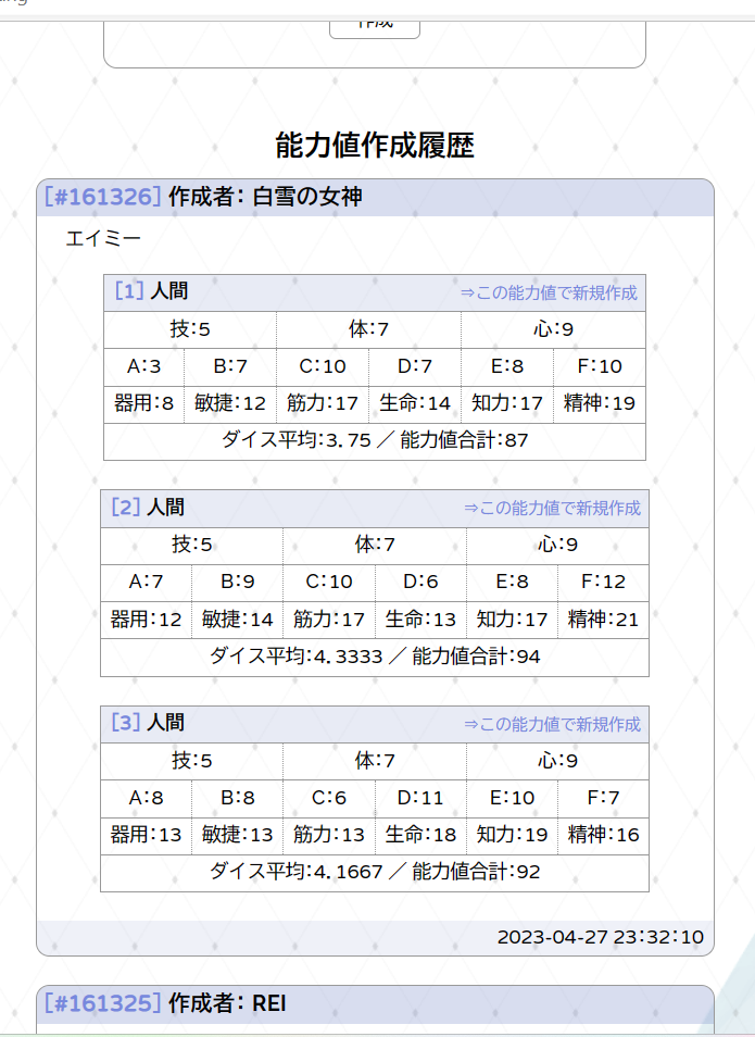| 能力値作成履歴#161326-2 | ||||||||