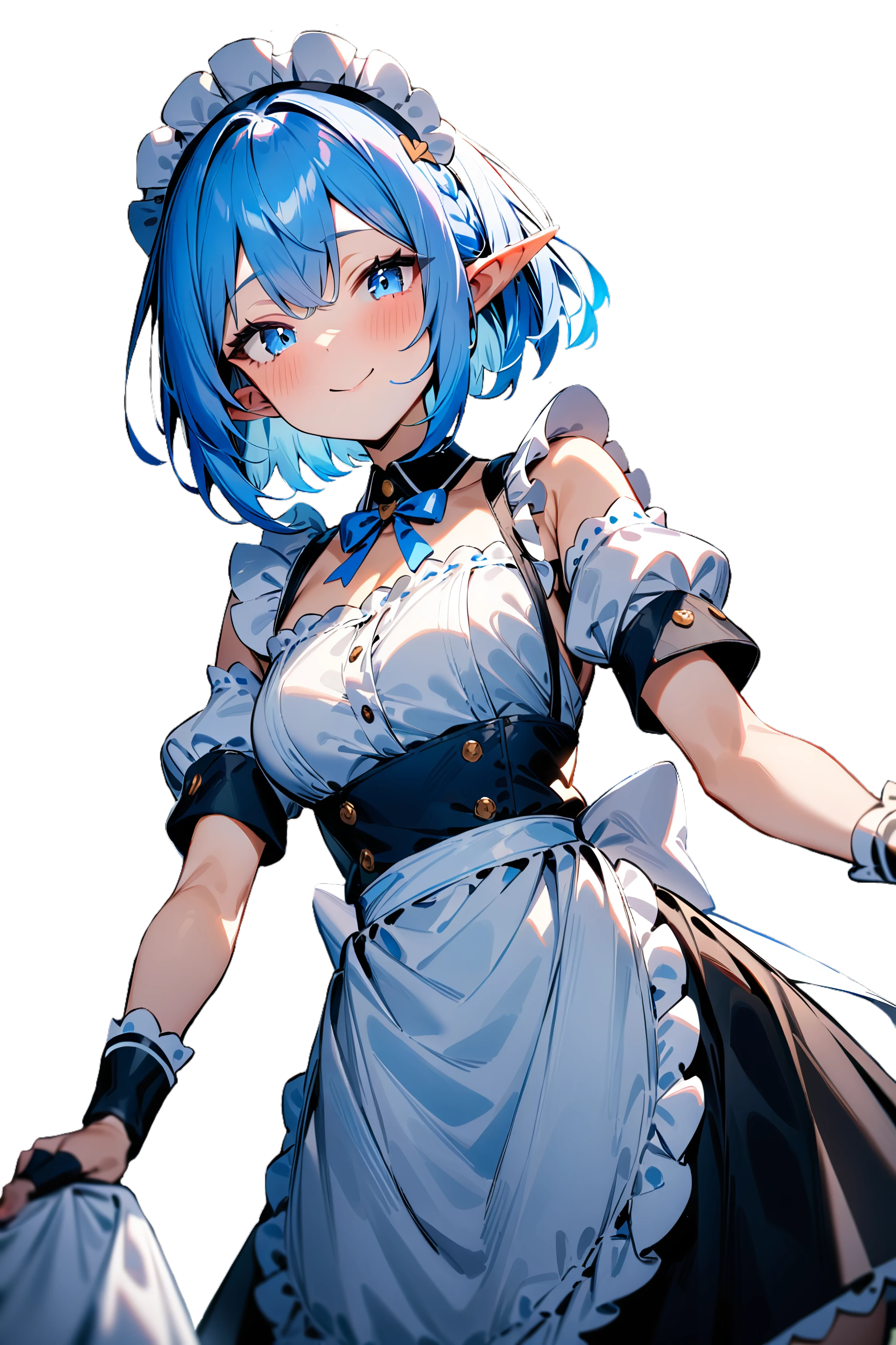 ラピスラズリのような青色のショートヘアに水色の瞳、エルフの少女。