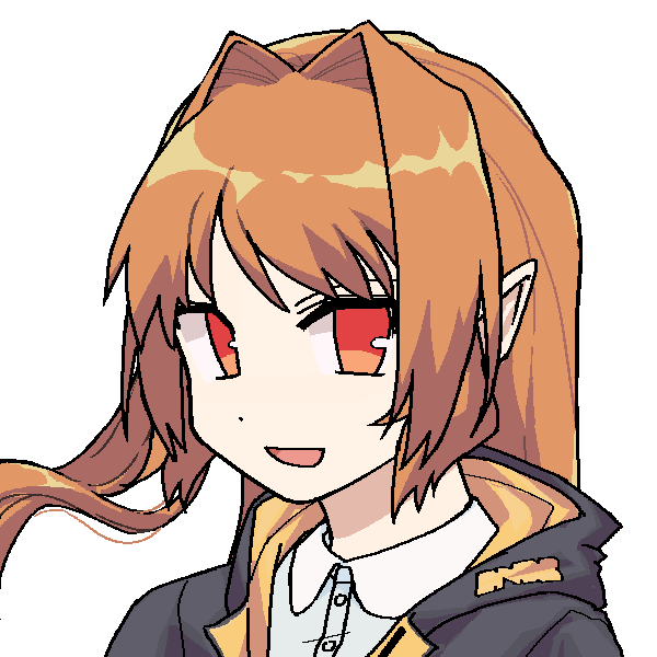 サーマルエナジー色明るめの橙色の長い髪、その一部を束ねたワンサイドアップ。