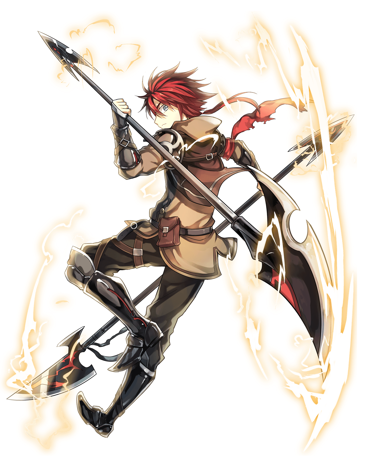 容姿:赤髪で強い意志を感じさせる蒼い瞳を持ったまだ年若い印象を覚える青年