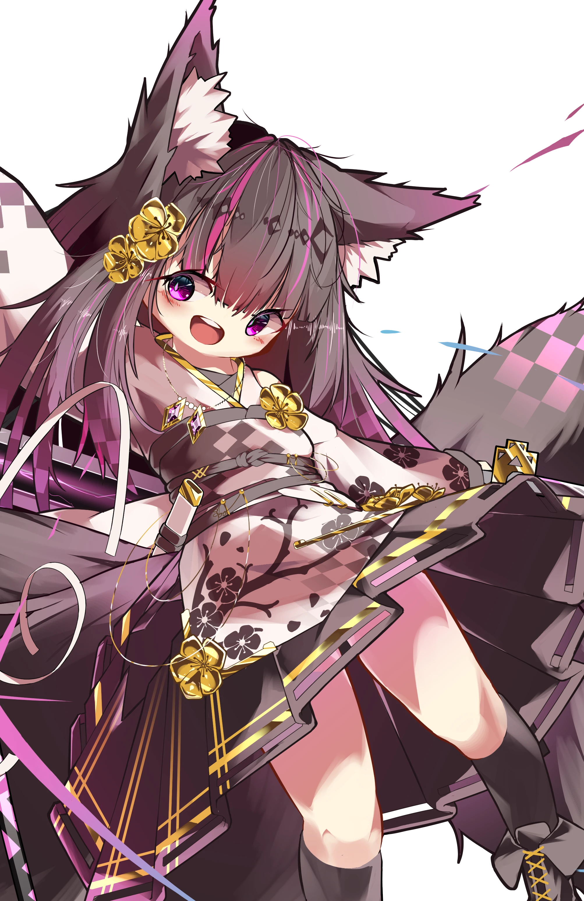 ☆黒く長い髪をなびかせる、狐のリカント。生まれの影響か、髪と尻尾にうっすらと魔力の文様が浮かんでいる