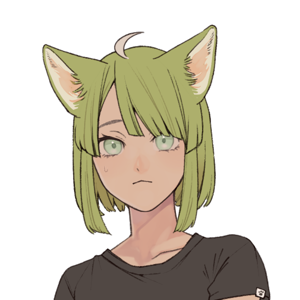 やや黄味がかった緑の髪と目を持つ平均的な背丈のリカントの女性。