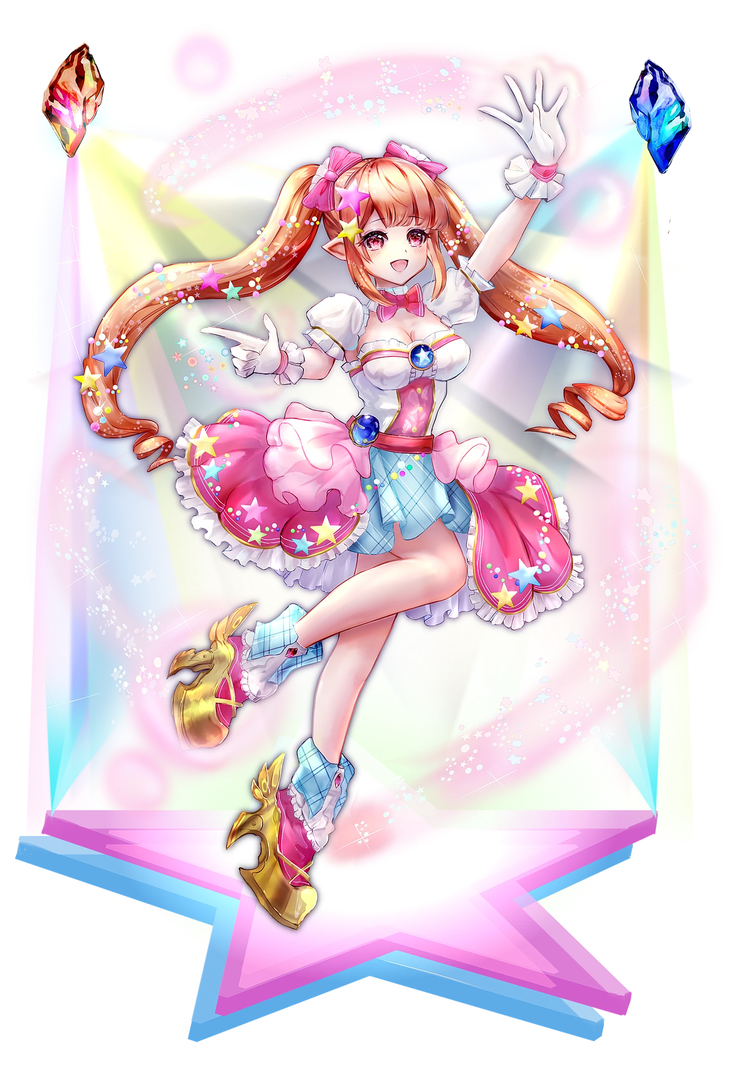 きらめくステージで、歌って踊る、輝いた女の子。