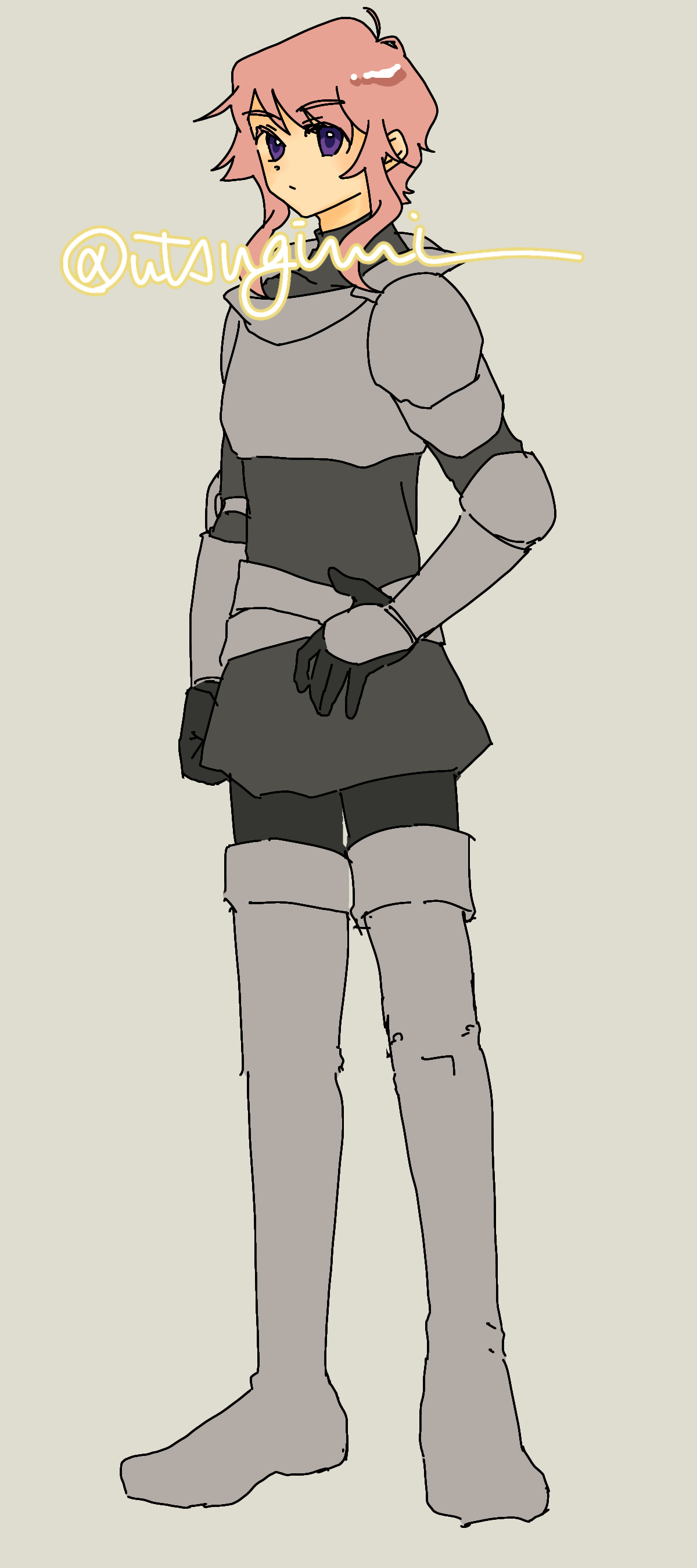 - 淡い桃色のふわふわショートウェーブの髪。目は暗い紫色。