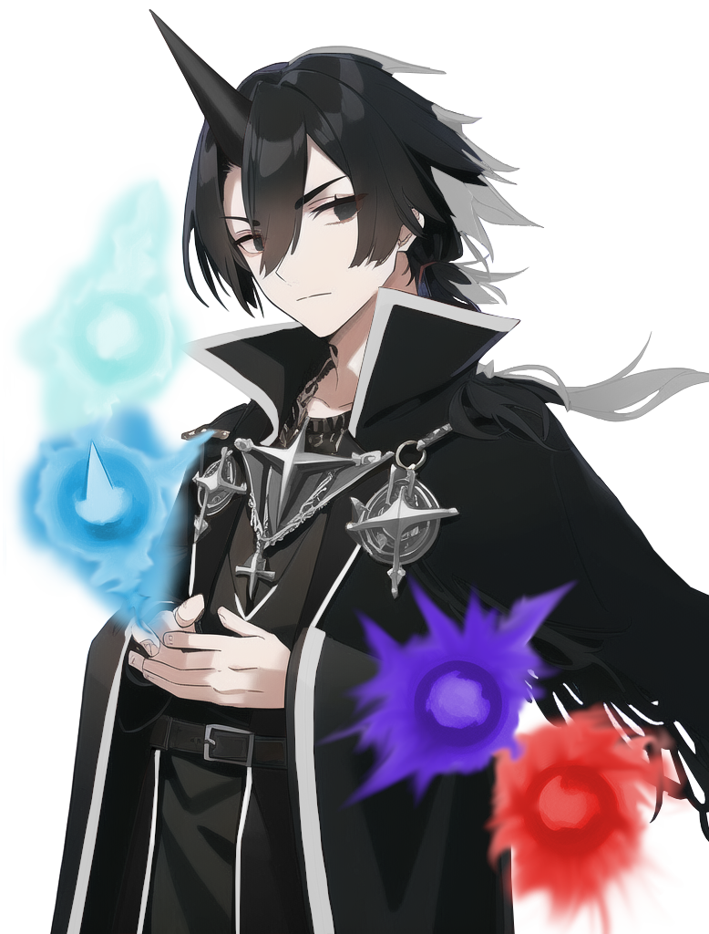 上記の経歴から自身がナイトメアである事の負い目や、他種族への恨みはありませんが、同時に自身が他の存在とは違う事も理解しているため、要らぬトラブルは避けるために、人通りの多い所では角は隠しています。