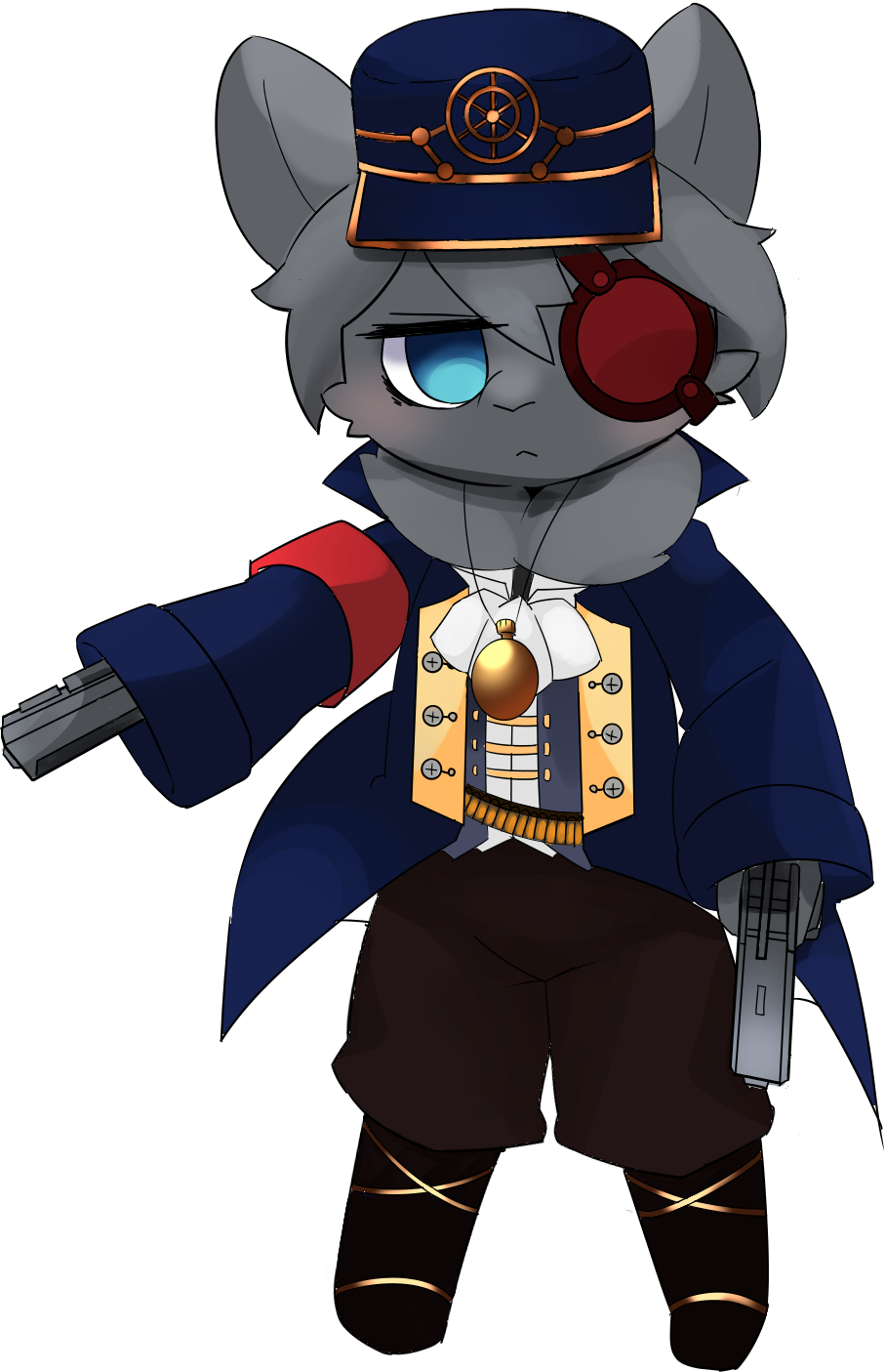 眼帯をした(隻眼の)灰色毛・碧眼のパイカ種タビット。
