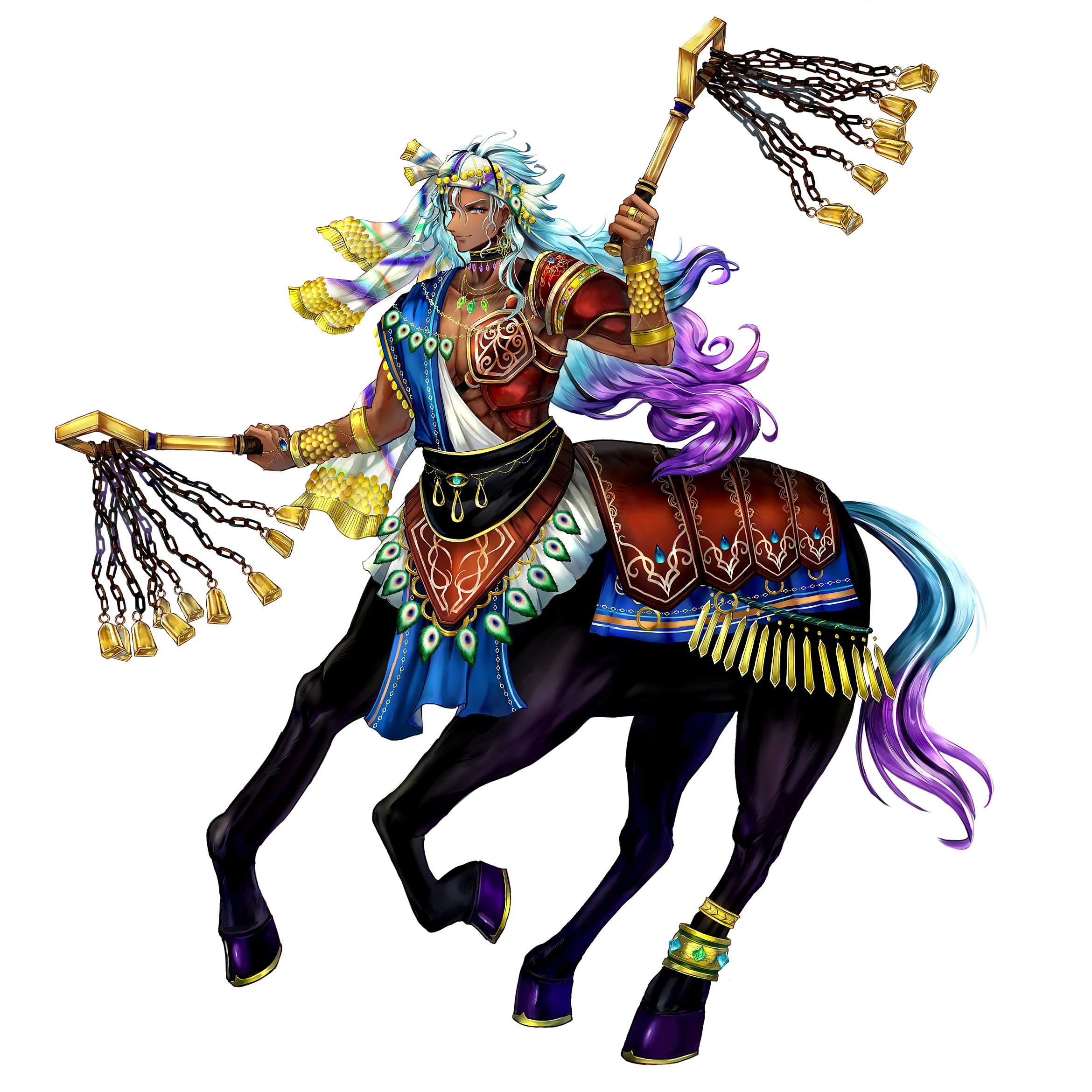 あるケンタウロスの部族の族長の息子。一般的なケンタウロスが多くそうであるように、幼い頃より戦士として育ち、10歳で成人するとほぼ同時に初陣を飾り、そしてその戦場で血華を咲かせながら舞う人族の戦士に恋をした。
