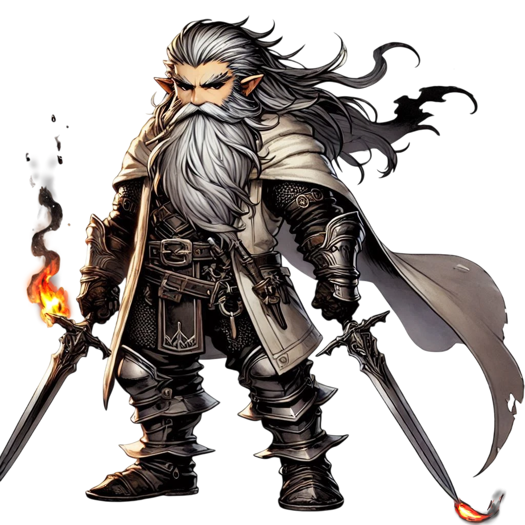 後ろ髪を黒い紐で結んでいるダークドワーフ