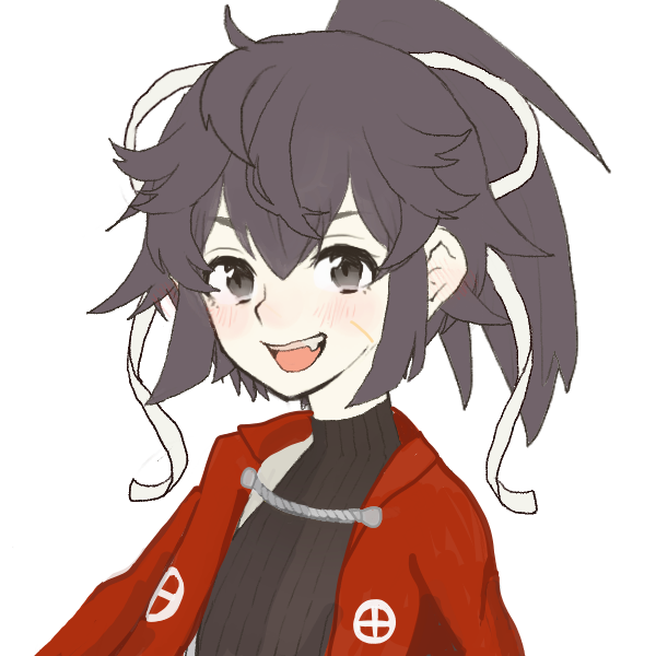 黒髪ポニーテイル。革ジャンぽい赤い服。首が大好き。