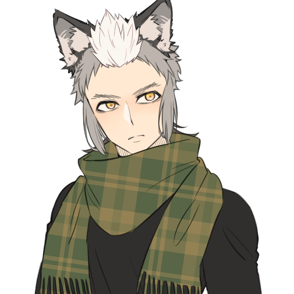 狼のリカント。189cm。黒灰色の髪に金色の目。