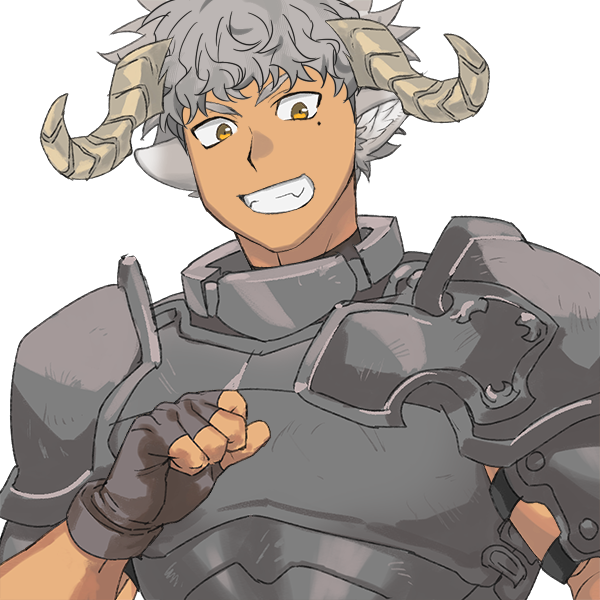 羊のリカント(大型草食獣)。獣変貌時は立派な角が生えた白い羊の頭になる。