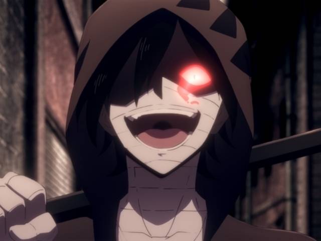 顔と上半身と両手を包帯で覆っており容姿は不明で、パーカーには返り血跡らしきものが付いている。