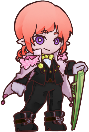 ピンクのロールテールが特徴的な女性のドワーフ。