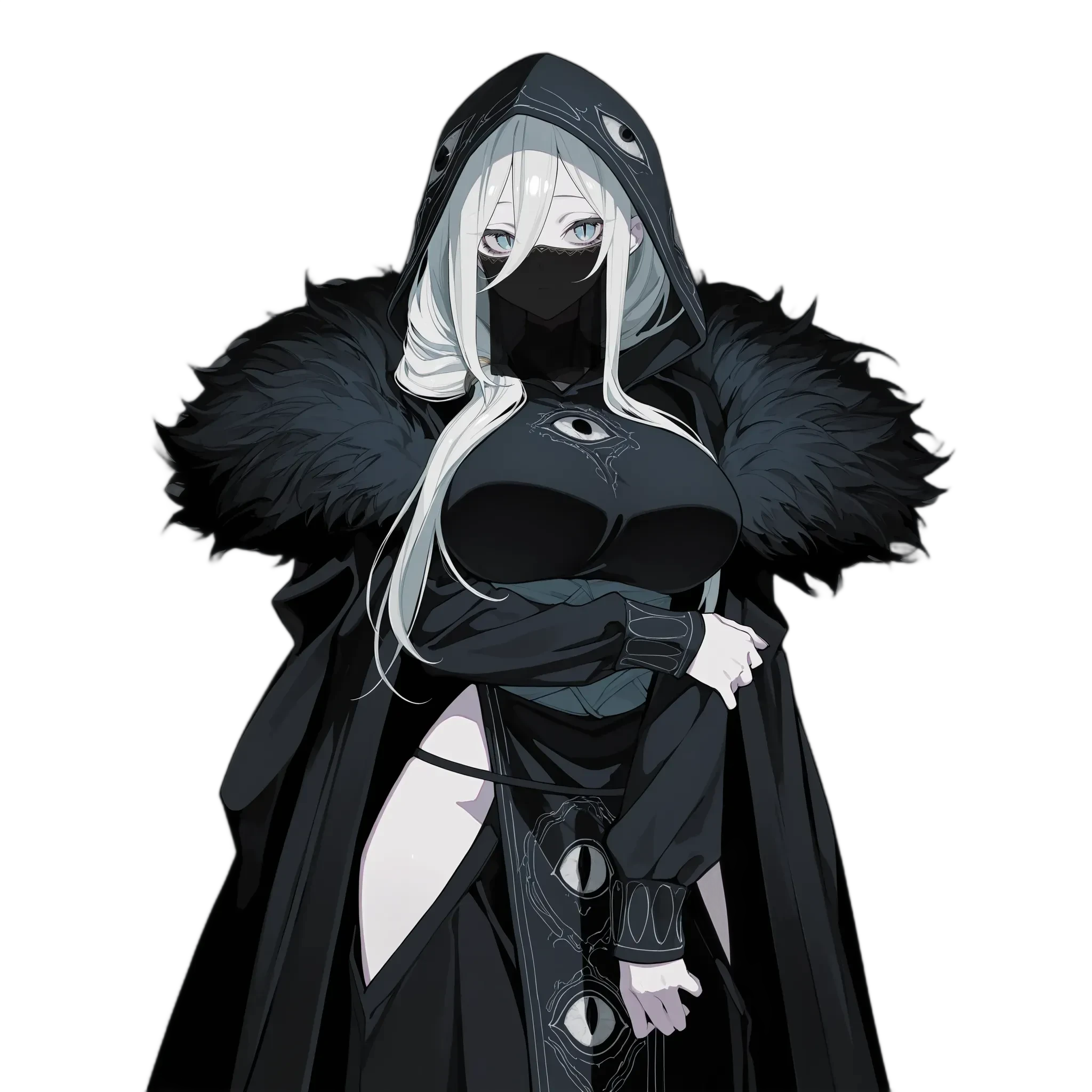 口布で顔を隠し、アルボル特有の紋様を見せないようにしているが、これは部族の風習から。