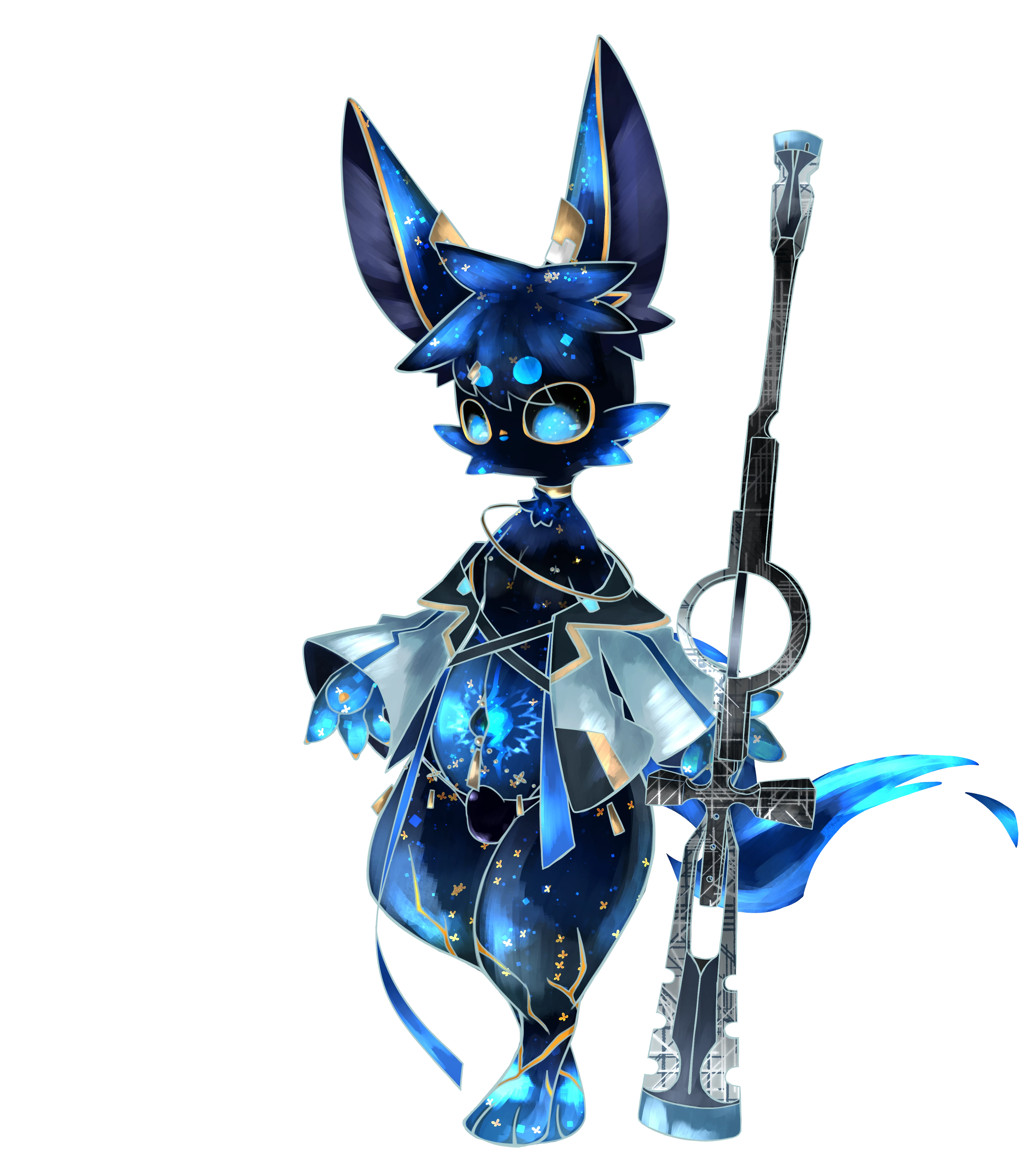 黒曜石のような耳、亀裂を継がれた四肢に青いシラーのある瞳。
