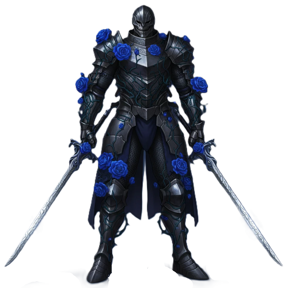 青薔薇のモチーフが柄に刻まれ、刀身には薔薇の蔓のレリーフが彫られている。