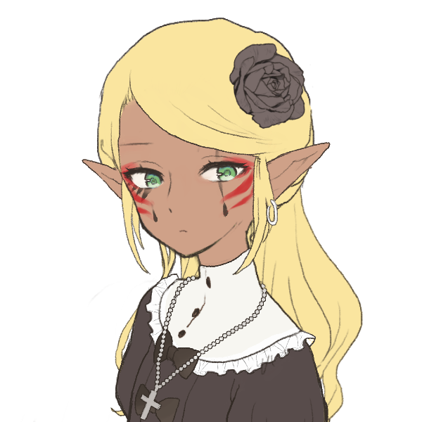 目的を達成した彼女は、今はそれなりに生活を楽しんでいる。マイペースなのも、好奇心旺盛なのも、頑固なのも、彼女自身の飾らない性質である。それでも、決して忘れてはならないことがある。故に、やや露悪的にすら聞こえる二つ名を名乗り、そして痛々しい傷跡――魔法で治そうと思えば治せるもの――を晒すような恰好をしているのだ。客観的には非合理なのも理解している。それでも、彼女自身がそれを忘れられない思い出として、そして忘れてはならない罪として記憶に刻み続ける限り、どちらの習慣もやめることはないだろう。