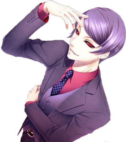 紫の髪に特徴的な眼を持っていて顔はイケメン