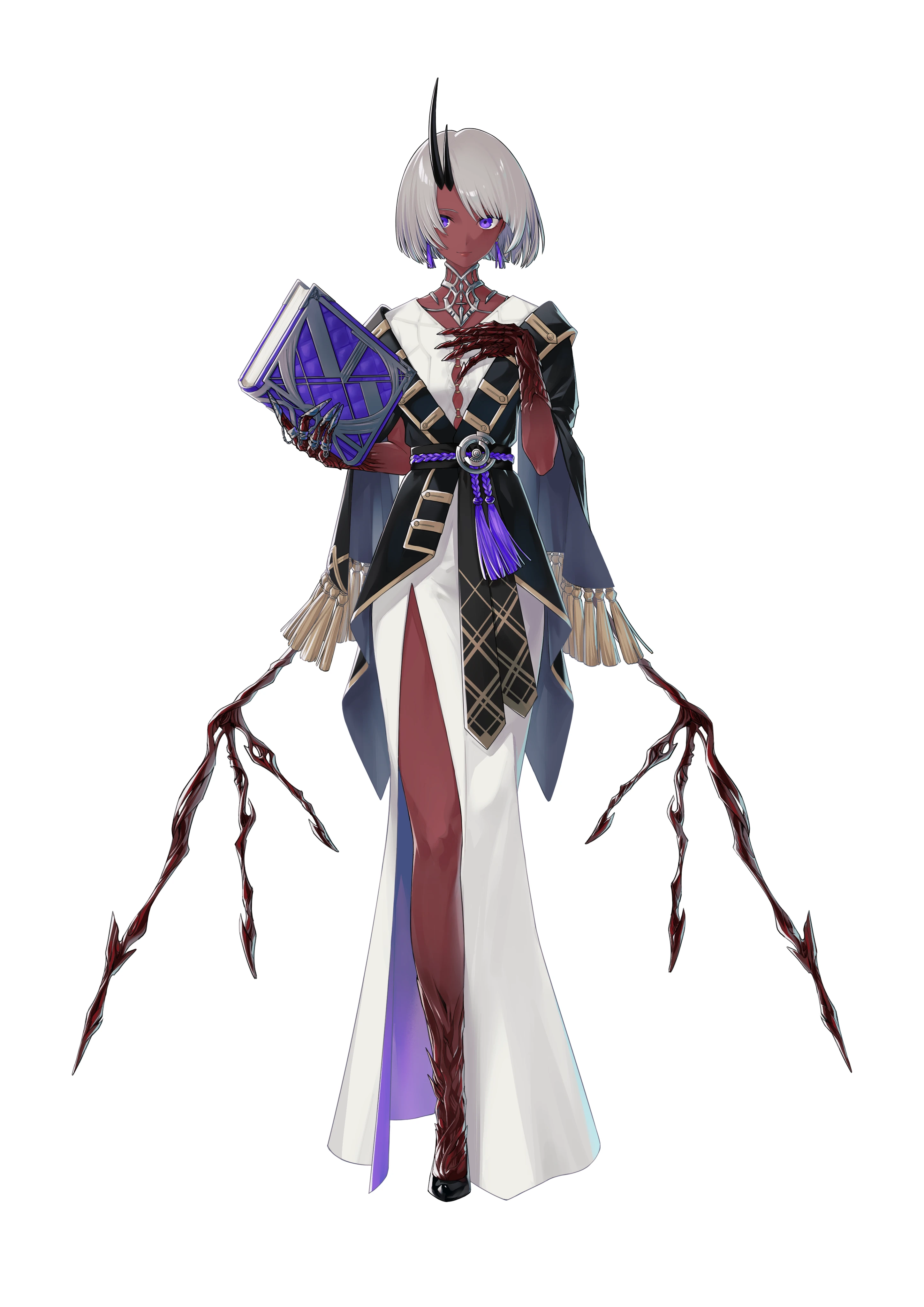 銀髪紫眼、好奇心と深淵を湛えた瞳にたおやかな仕草、物静かな雰囲気も相まって神秘的な美しさを誇る