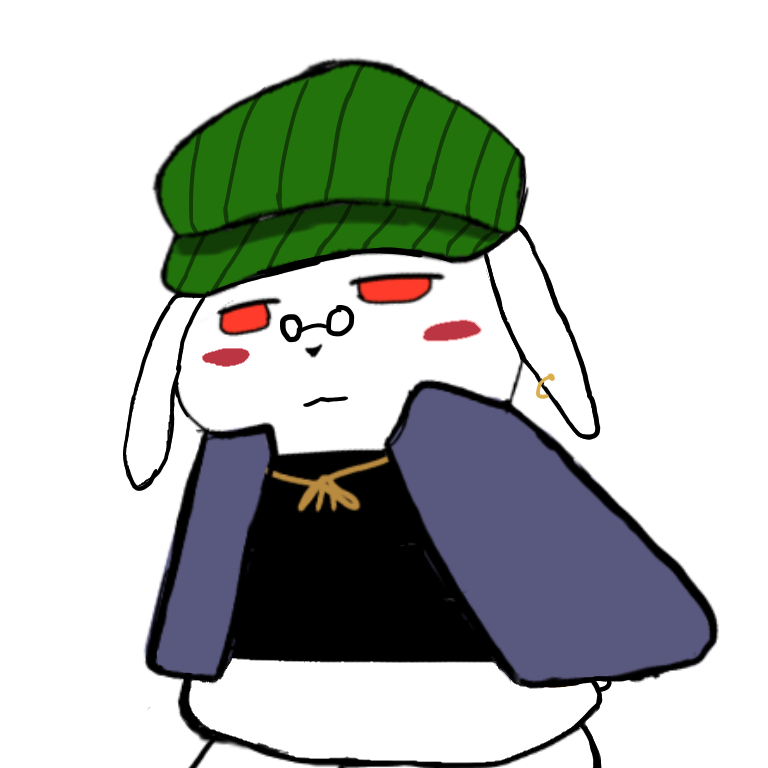 真っ白な毛並みのハンチング帽子を被ったタビット。