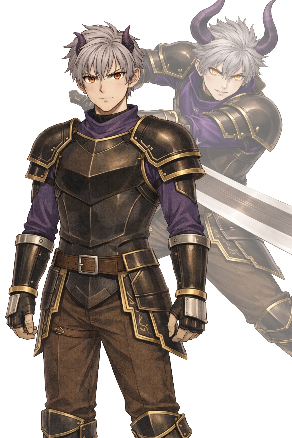 頭部に2本の濃い紫の角、体に痣を持っている。