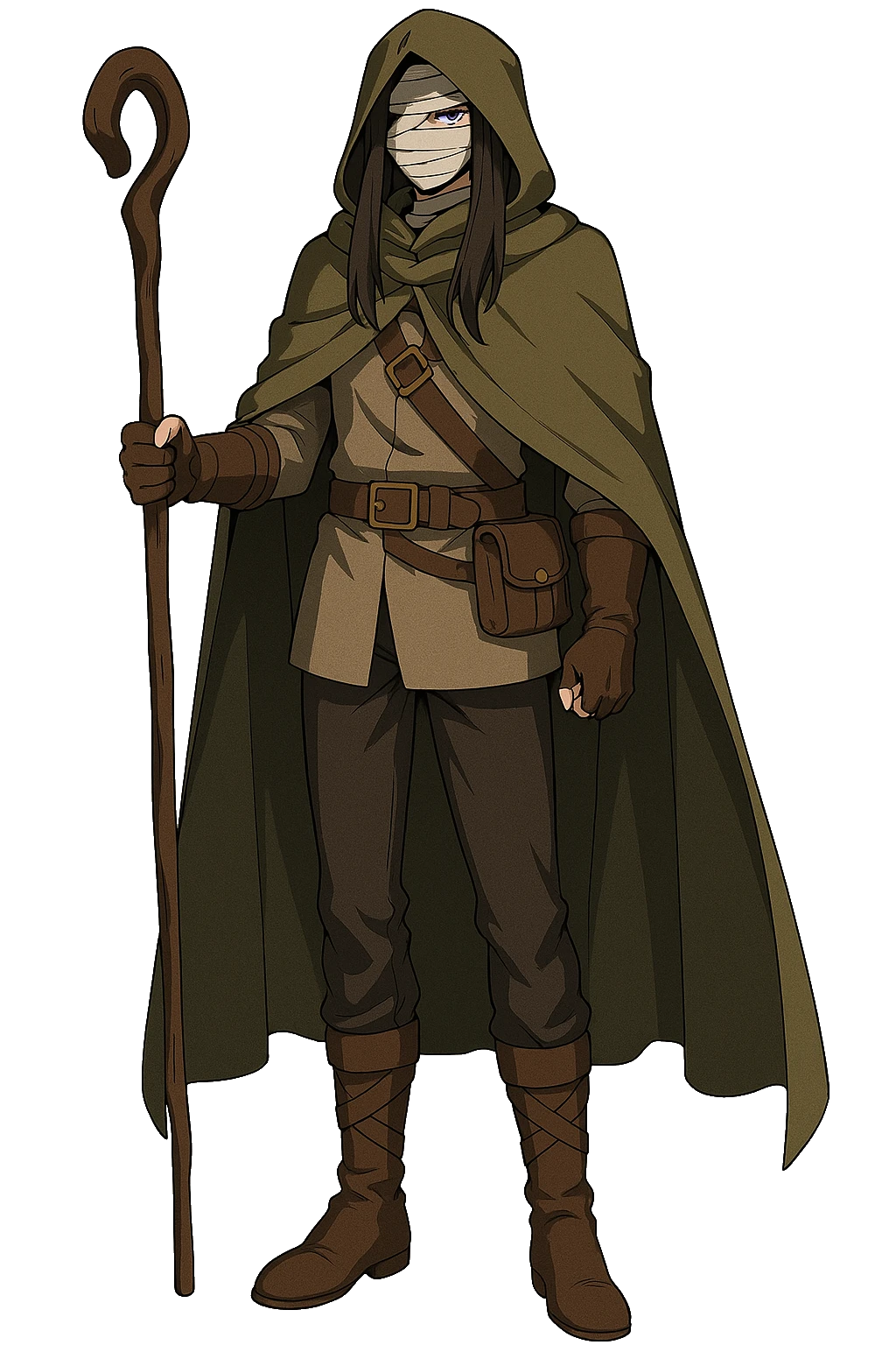 フードとマントで顔を隠している。