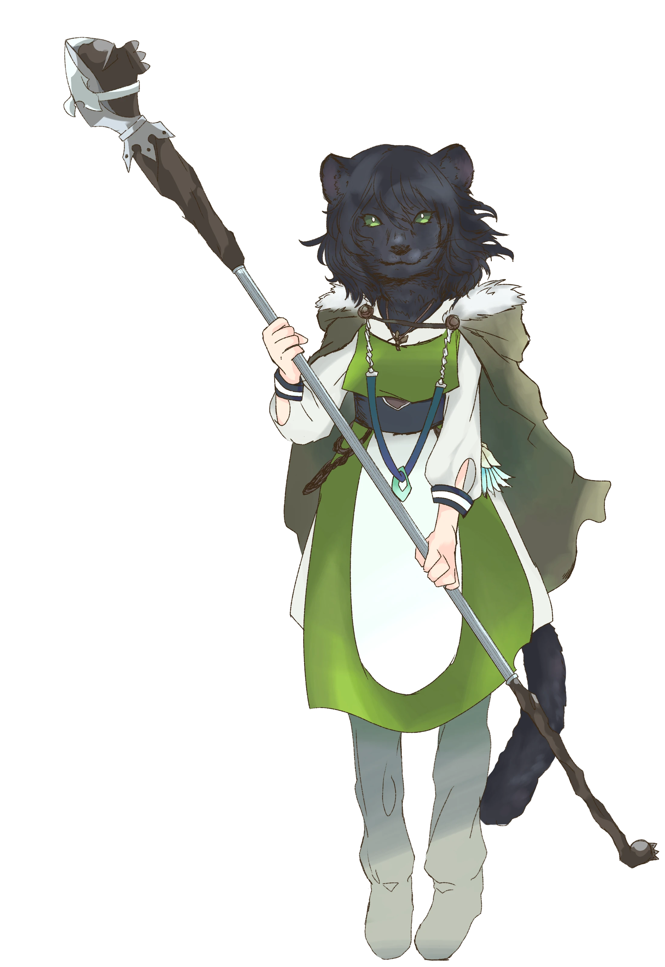 大きな杖を常に持ち歩いている黒豹のリカント。お淑やかそうな雰囲気とは裏腹に、中身は脳筋。