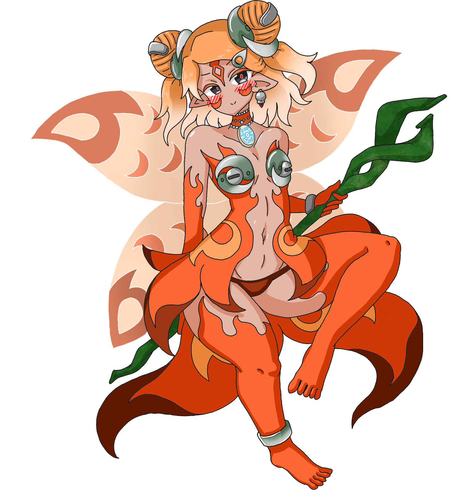 髪:橙-白色 瞳:黒色 肌:褐色