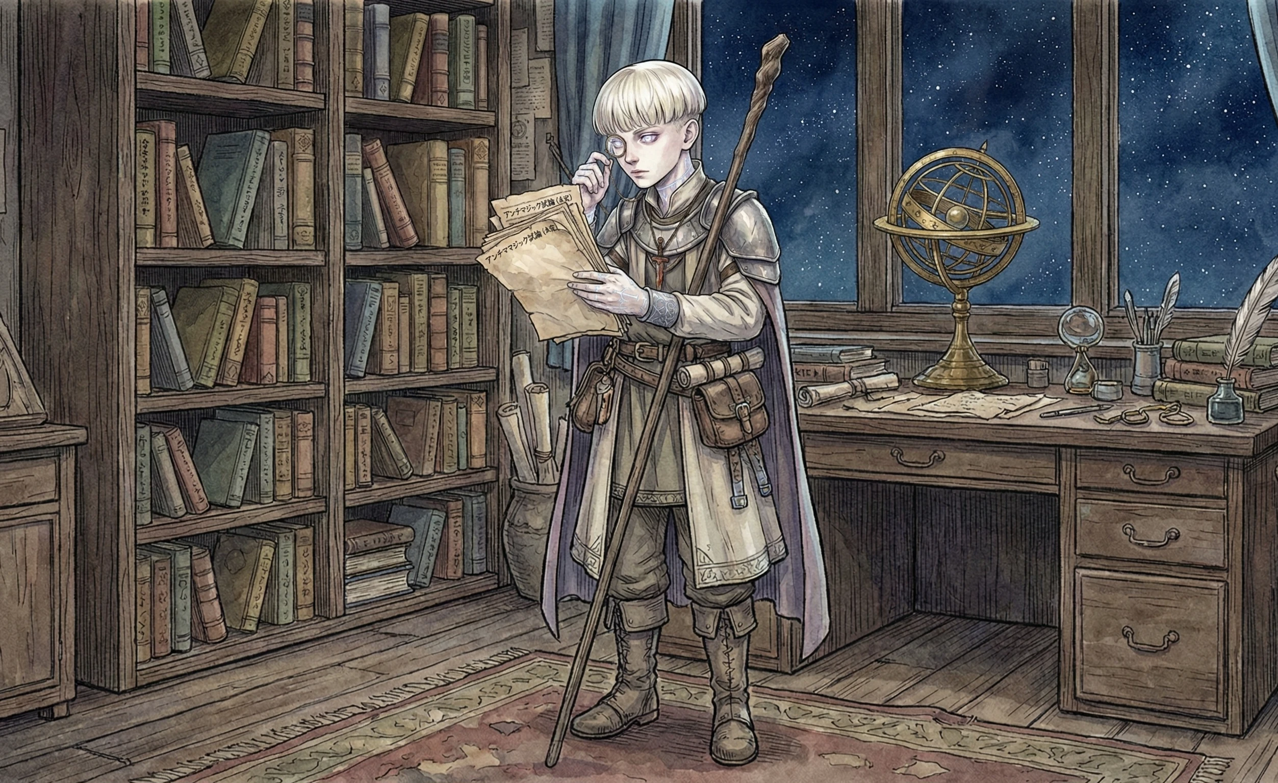 「魔法を無効化する」という、魔法使いにとっては矛盾するような理論がびっしりと書き込まれていますが、肝心な結びの部分はまだ白紙です。