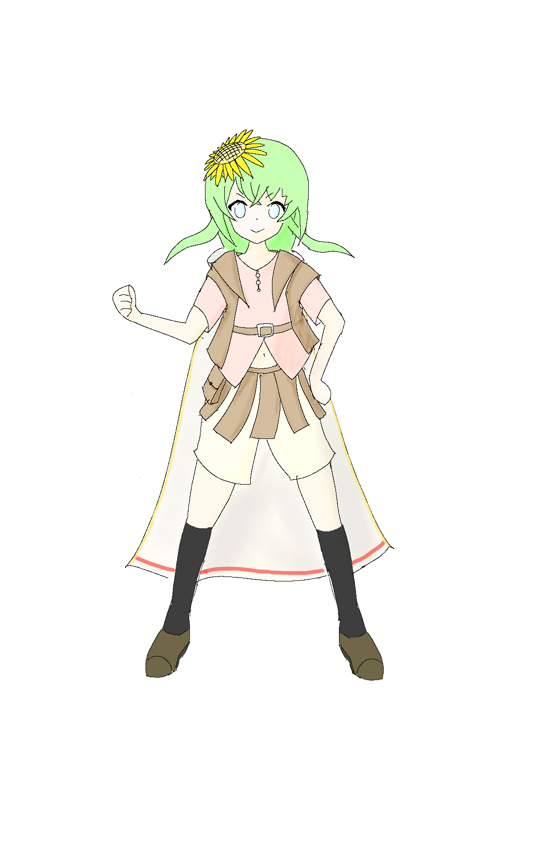 身長153、髪の色は新緑色、瞳の色は水色。