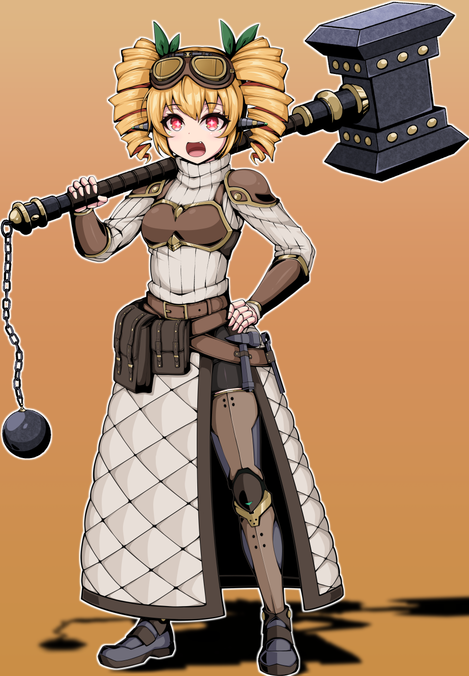 小さな体だが力自慢で、よく廃材処理に大きな槌を振るっている。