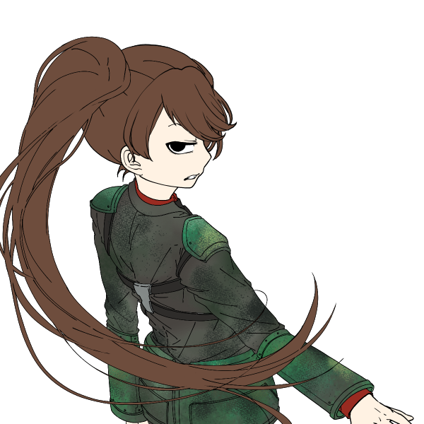 身長158cm やせ型 ぎろりとした目つきと長い茶髪が特徴的。左目に石化の眼を持ち髪で隠している