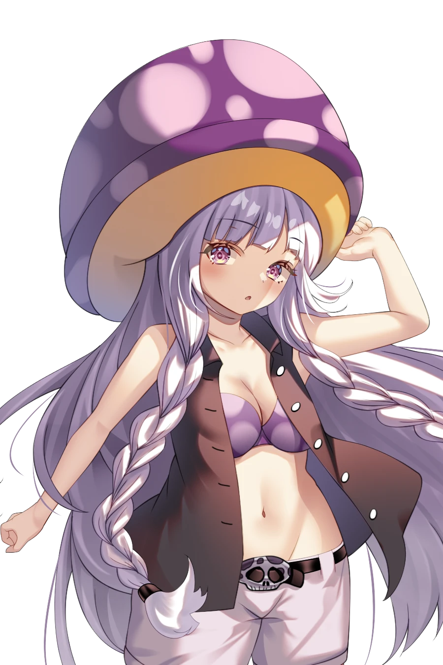髪 さらりとした薄紫の長髪で、二房ほど三つ編みにしている