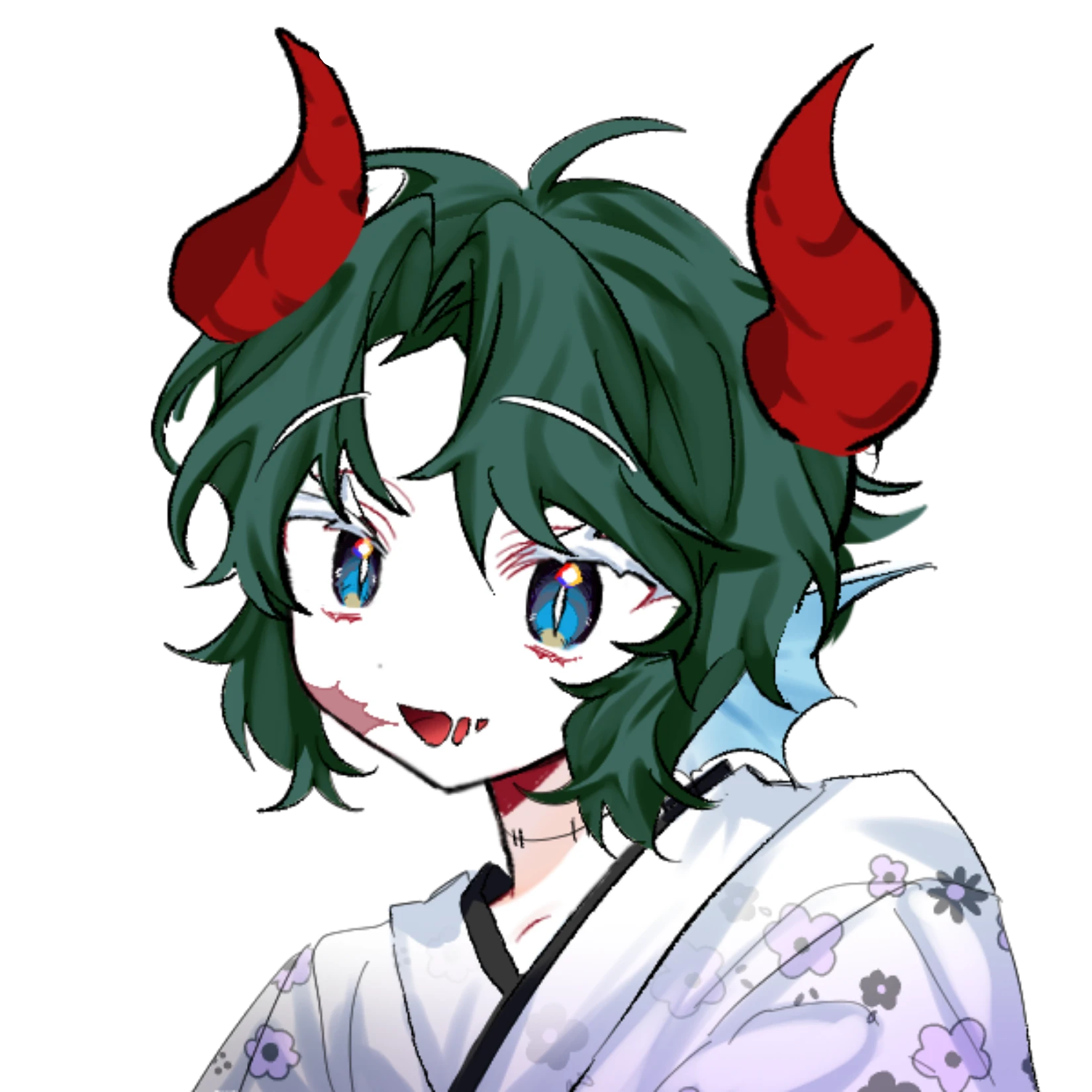 村ん子…ちゅうよりは街ん子やね…同じくらいん友達が出来ても、背ん伸びも角も鱗も羽も飛び出しとっから…こうなーわ。(右目の下の古傷を出す)ウチはここらで全うには生きてけんと知った。んでもふらふらと行き流れて…先生に会ったんよ。運命や思った。それはもう面の裏まで真っ赤になってしもうて…剣の振り方も知らんかった小娘に丁寧に教えてくれた人がいて、今のウチがここにおる。ウチの技は先生ん技です。だから、先生。ウチに名前をください。剣を振る徒としての…新たな名を。