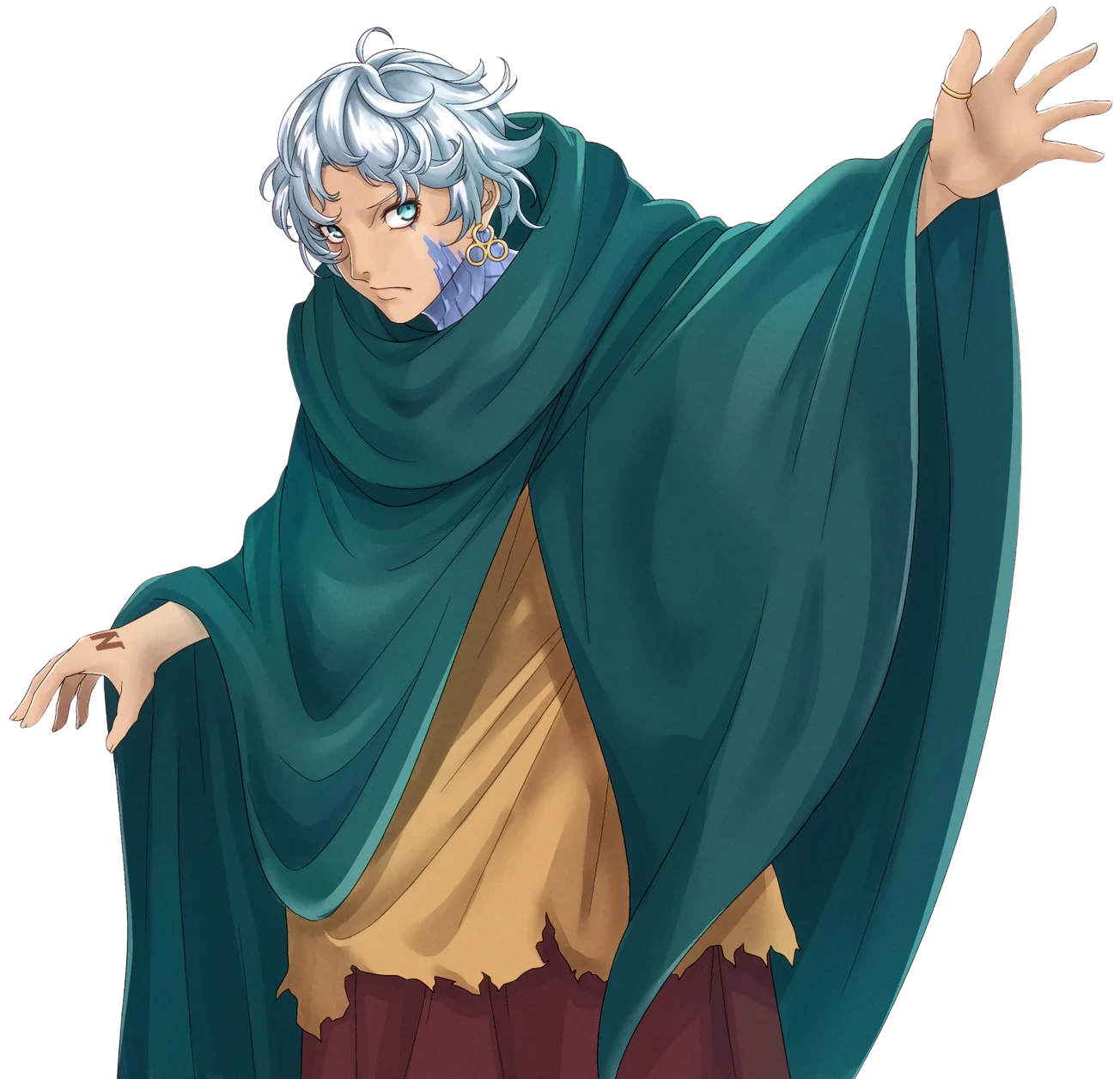 ・容姿 - - - - 背はルーンフォークのなかでも小さい。ピアスとして付けている3つの円がつながったアクセサリーを付けているがこのアクセサリーの入手経緯などは不明。自分の背丈よりも一回り以上大きいローブを身にまとっている。これらの入手経路もアクセサリー同様不明である。しかしその年季からNo.iが使われる前から相当な距離を歩いてきたと思われる。砂漠のような日差しが強く乾いた環境に適した安価な服装である。
