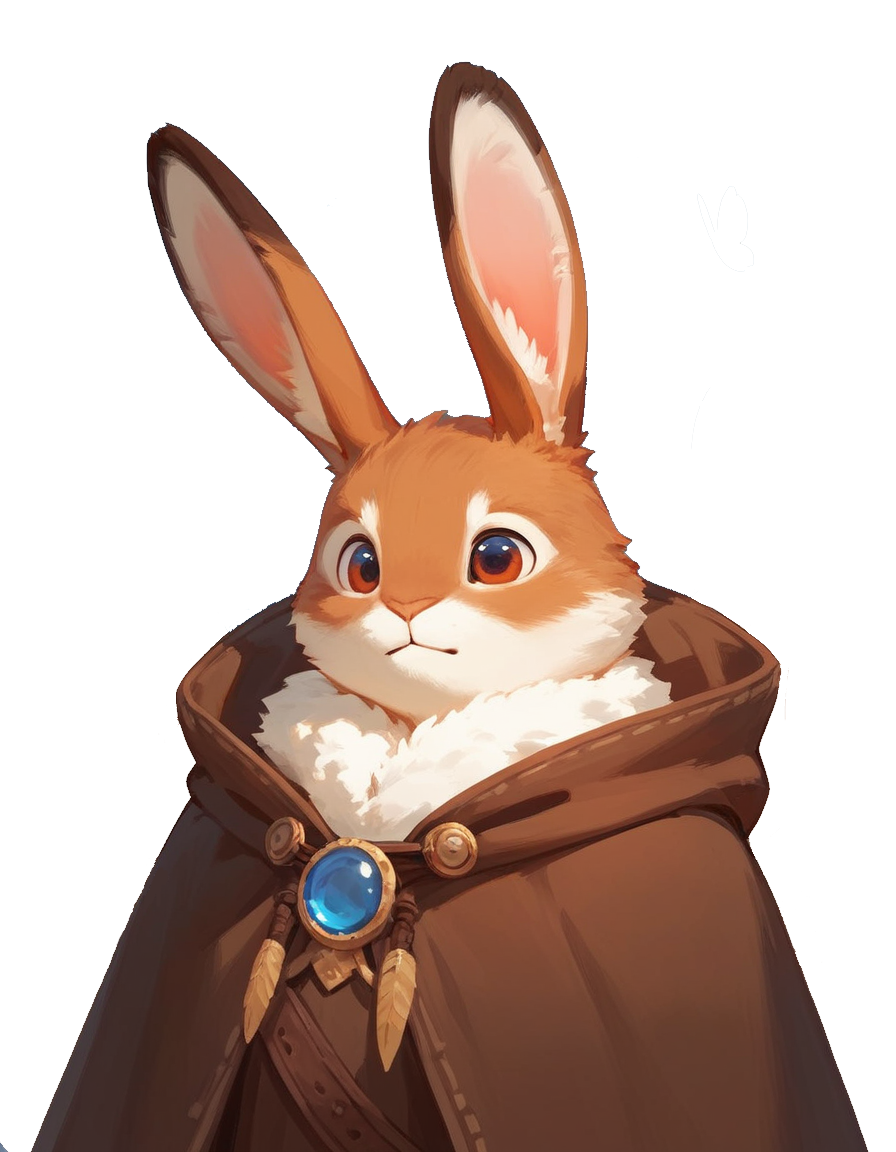 ・身長112cm(耳含めず)、体重22kg、白と茶の二色の毛色を持つ。普段は地面を擦らないよう丈詰めした人間用のクロークを着ている。