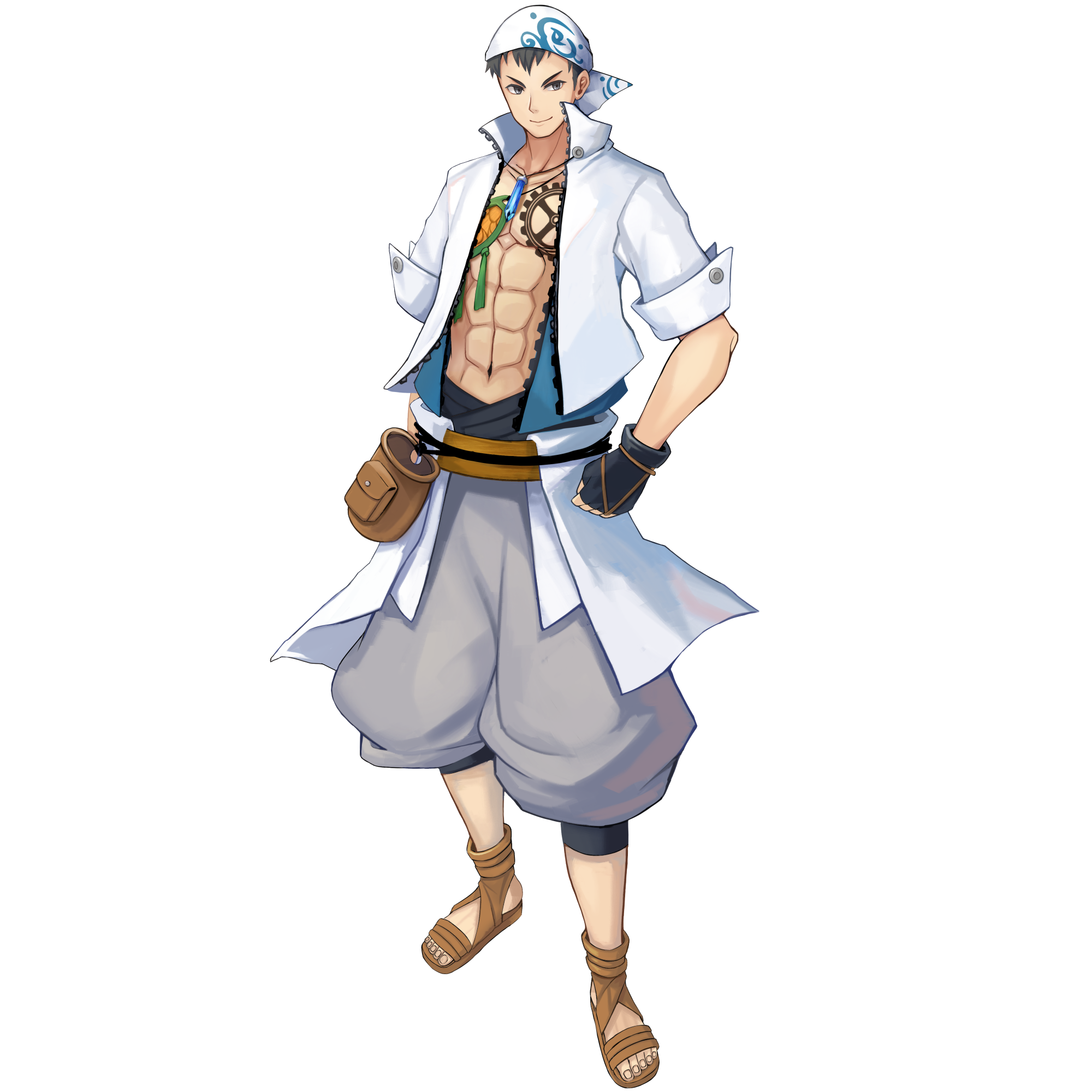忘れてしまったのか、最初からなかったのかは定かではありませんが、使命に関する自覚も特にありません。自分が器械神レパラールのセンティアンだということは知っていますが、レパラールは教えを広めることに積極的な神でなく、自らの技術の研鑽とその技術による成果物を重視する神です。そのため村に対する布教すら行わず、あまり手先は器用ではありませんが、それでも漁船や漁具などの開発、調整、修理に携わり3年…「不思議な石像の男」として、村の仲間に受け入れられ、親しまれています。
