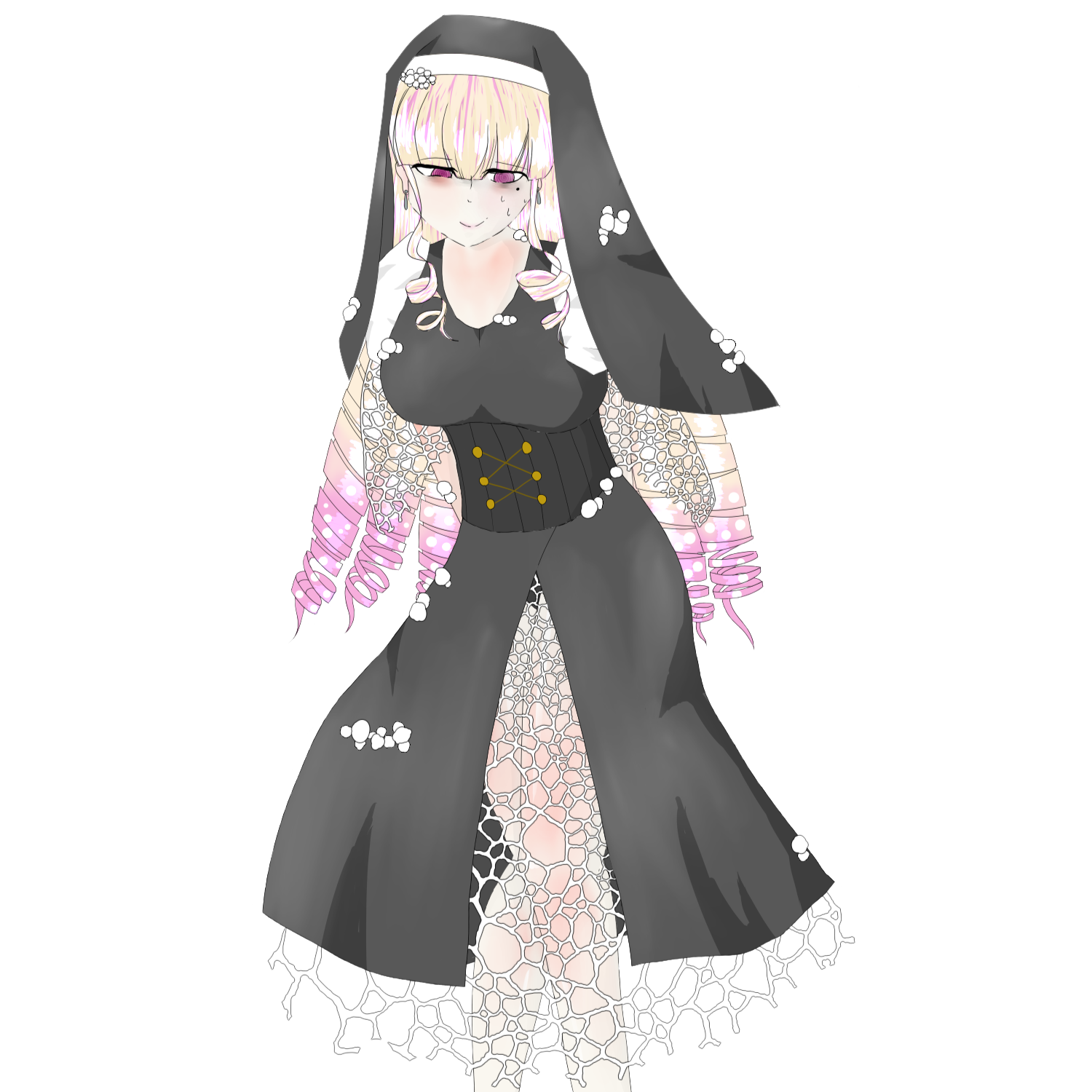 頭や肩、手首からキヌガサタケがフリルのように生えているのが特徴。