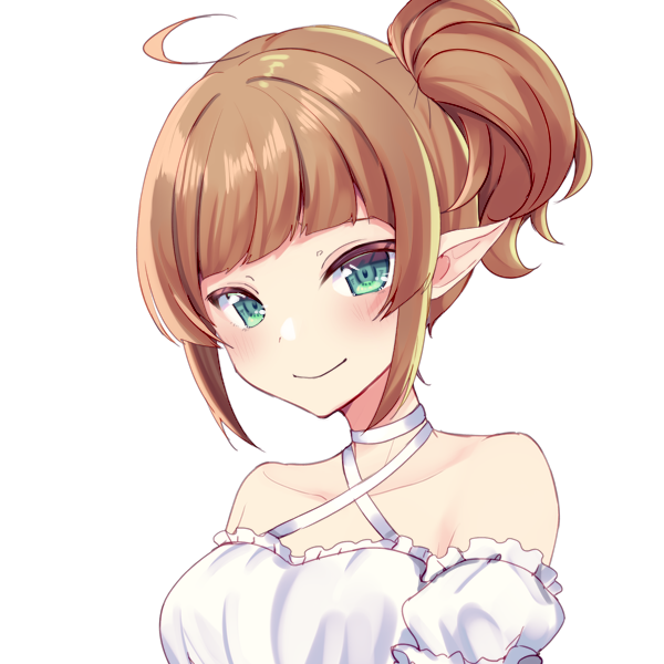栗毛ポニテなエルフの女性。
