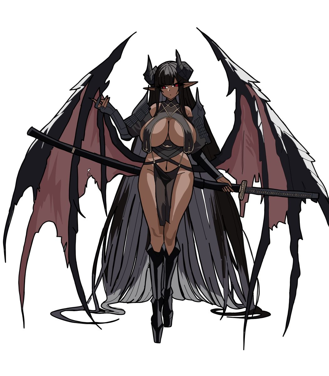 地面に届くほどの長さの黒髪に、赤い瞳、高い身長にグラマスな体型、赤褐色の肌の美女。